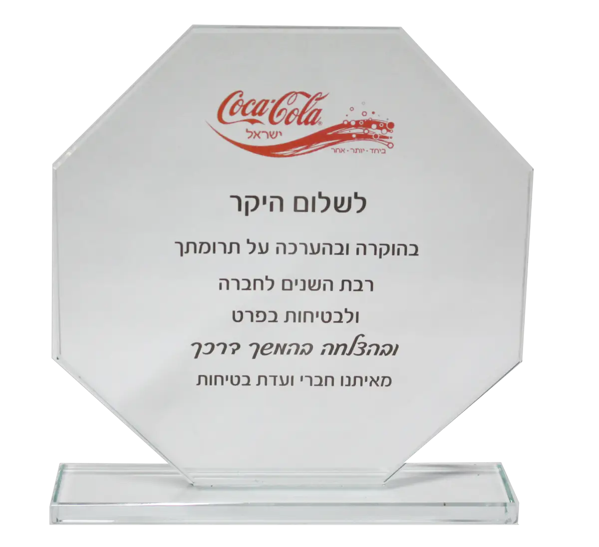מגן זכוכית בהדפס סובלימציה צבעוני. גובה: 21 ס"מ.