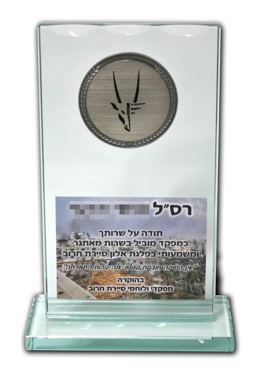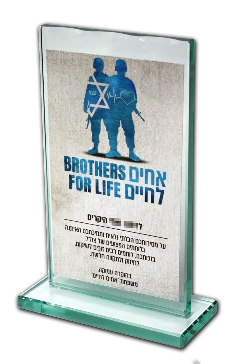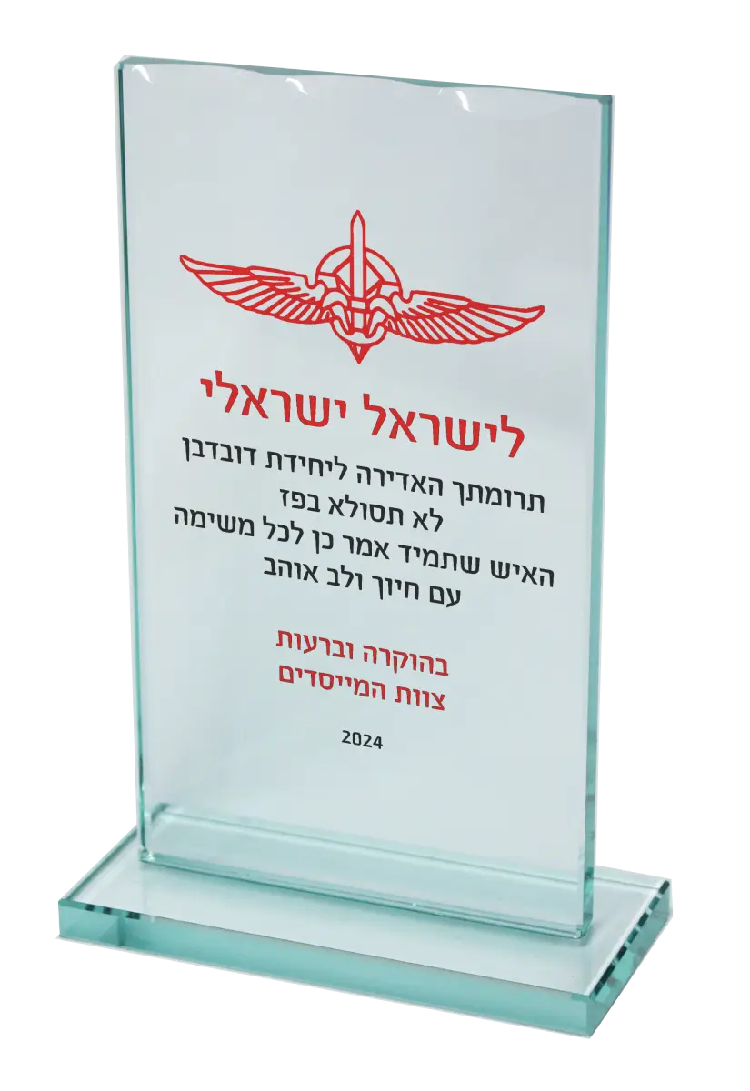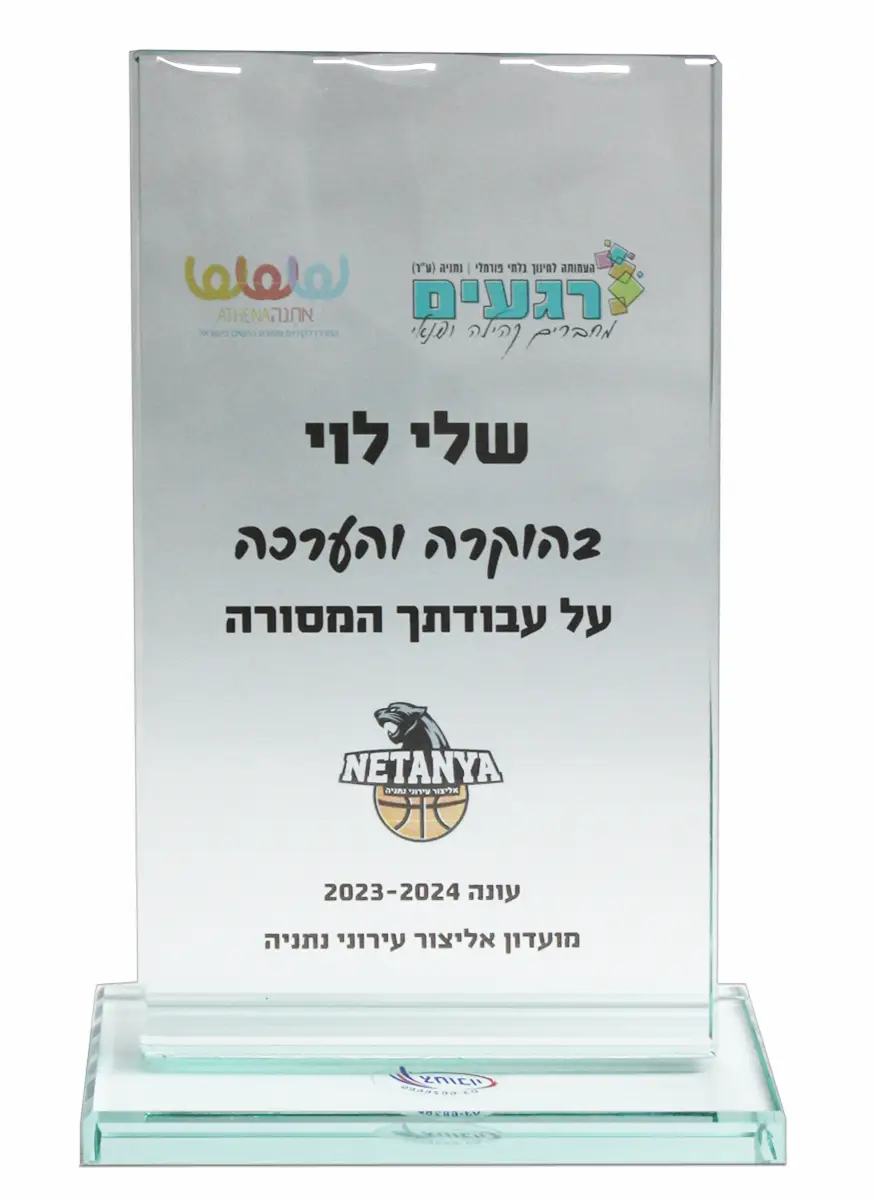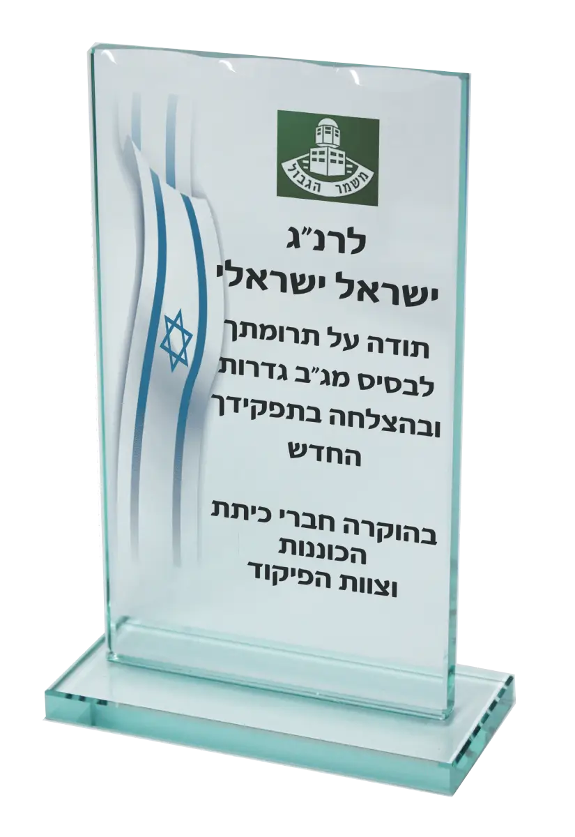מגן זכוכית בהדפס סובלימציה צבעוני. גובה: 20 ס"מ.