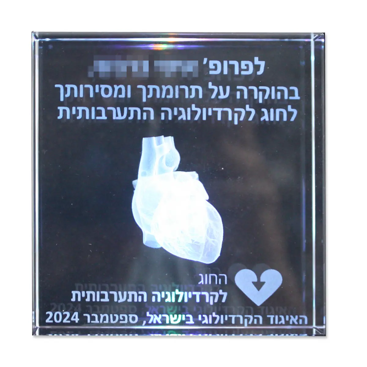 קריסטל 100/100/30מ"מ 31GL145. בחריטת תלת מימד 3D.