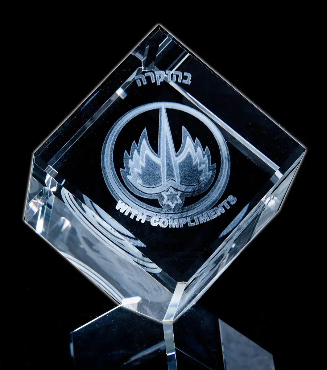 קוביית קריסטל מרובעת בחריטת תלת מימד פנימית.